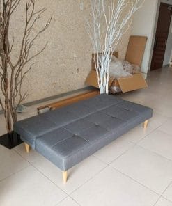 Mẫu ghế sofa giường đa năng với kích thước dài 1m75 vừa đủ cho bạn nằm ngủ thoải mái, có 5 chân gỗ tự nhiên bền đẹp thời trang.