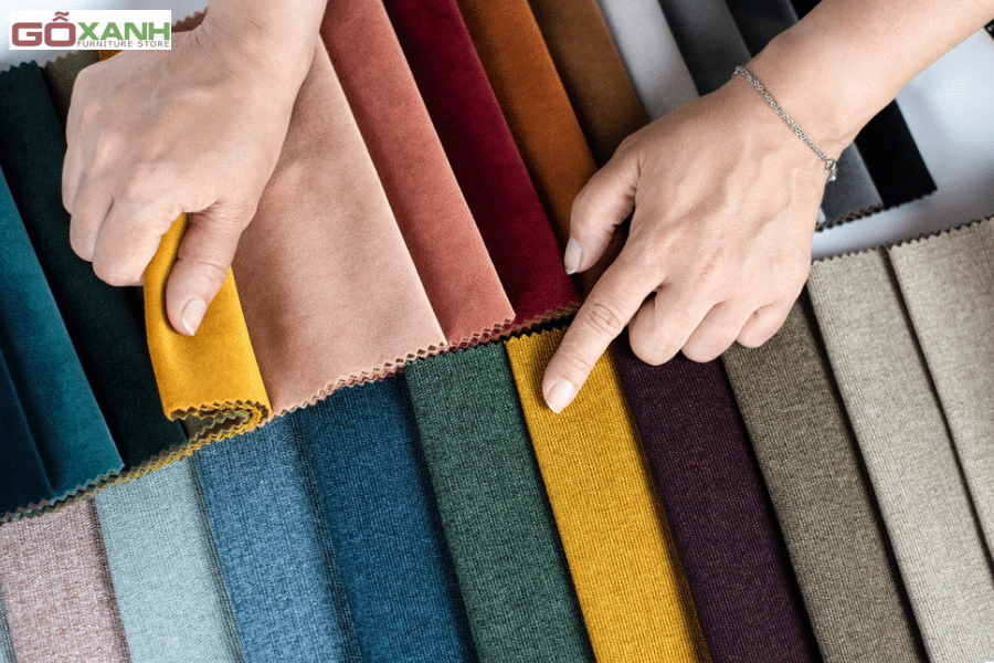 - Vải nhung: Tạo cảm giác sang trọng, mềm mại, ấm áp, thích hợp cho những phòng khách cao cấp hoặc không gian mang phong cách châu Âu.