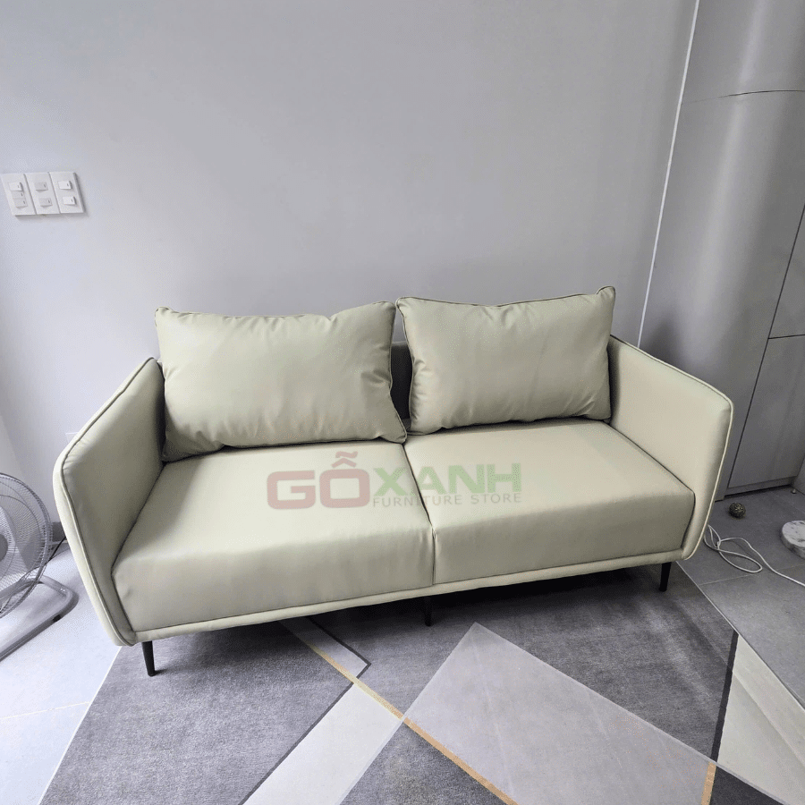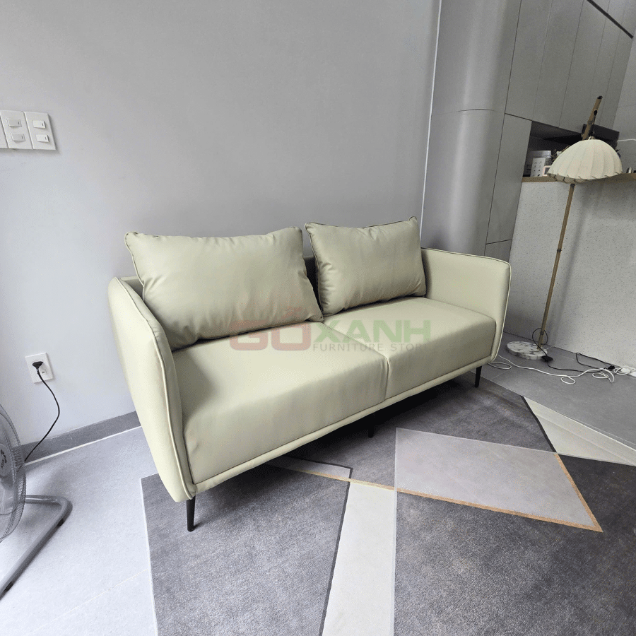 - Kiểu dáng đơn giản, thanh lịch, sofa băng tay mỏng 2 chỗ dễ dàng kết hợp với mọi phong cách nội thất từ tối giản đến hiện đại.